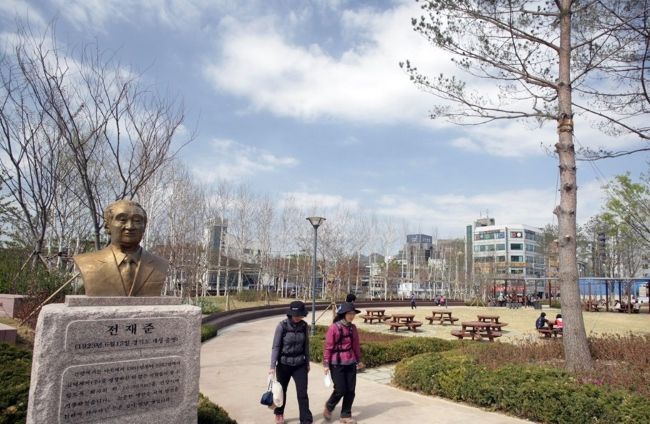 삼덕제지 안양공장이 있던 자리에 들어선 삼덕공원. 이 공원은 2003년 8월, 고 전재준 삼덕제지(현 삼정펄프) 회장이 당시 시가 500억 원이 넘었던 공장부지를 안양시에 기부해 만들어졌다.
