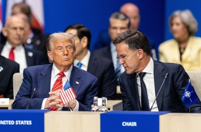 마르크 뤼터(오른쪽) 나토 사무총장은 26일(현지시간) 유럽 일각에서 제기되는 독자방위론에 대해 “유럽은 미국 없이 스스로 방어할 수 없다”고 반박했다. [사진=EPA 연합뉴스]