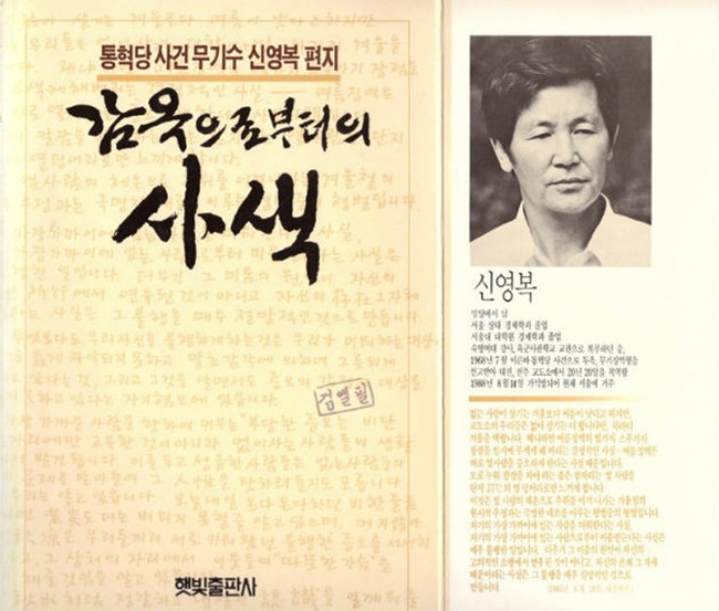‘감옥으로부터의 사색’ 표지와 책날개. [사진=햇빛출판사]
