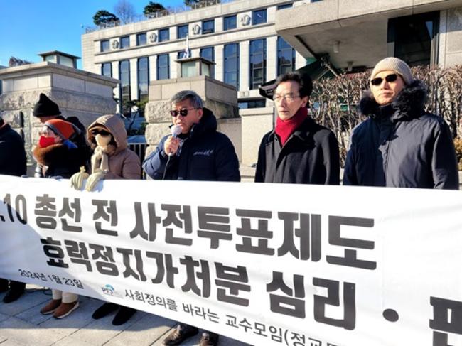 전국 6300여 명의 교수 회원을 둔 사회정의를바라는전국교수모임(정교모)이 지난 2024년 1월23일 선거의 투명성을 보장하고 국론 분열을 막기 위해 헌법재판소가 4.10 총선 전에 사전투표제의 위헌성을 심리·결정해달라고 촉구하고 있다. [한미일보]