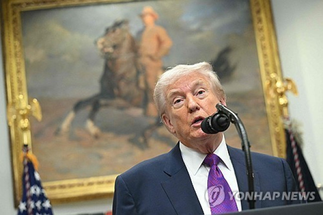 발표 장소 들어서는 트럼프 발표 장소 들어서는 트럼프 [UPI=연합뉴스]
