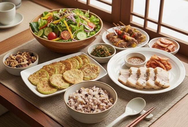 • 쌀밥 대신 잡곡밥… 갈비찜 대신 수육 한 접시