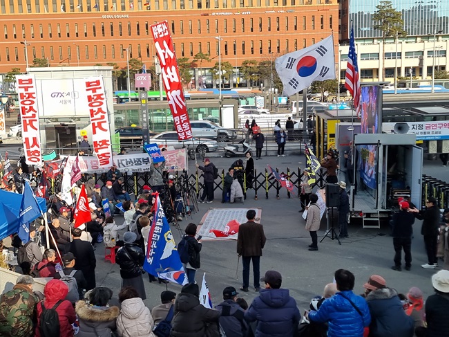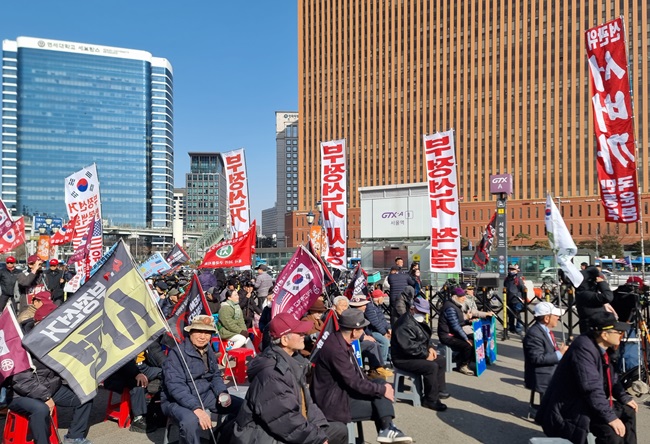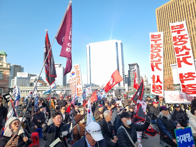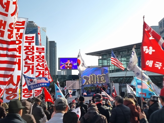 모처럼 기온이 올라간 21일 토요일 3시 서버까국민운동본부(서버까, 대표 장재언) 주최로 열린 부정선거 규탄 집회에는 여느 때보다 많은 지지자가 모여 애국 보수 우파의 결집력을 보여주었다.