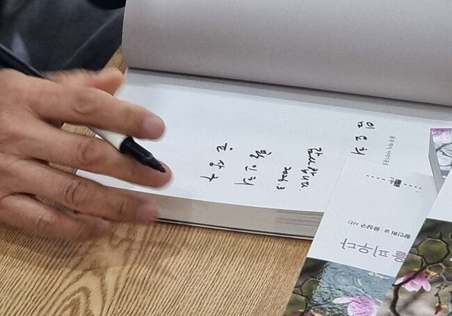 윤상구, 황인희 작가가 자신의 책에 싸인을 해 주고 있다.