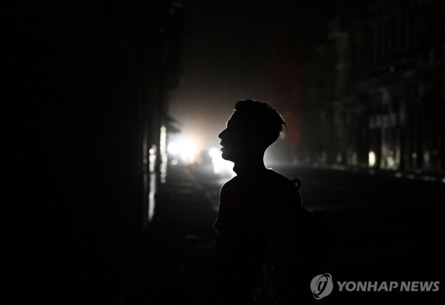 21일(현지시간) 전력망 붕괴로 대정전이 발생한 쿠바의 아바나 거리에 나온 한 주민. [연합뉴스]
