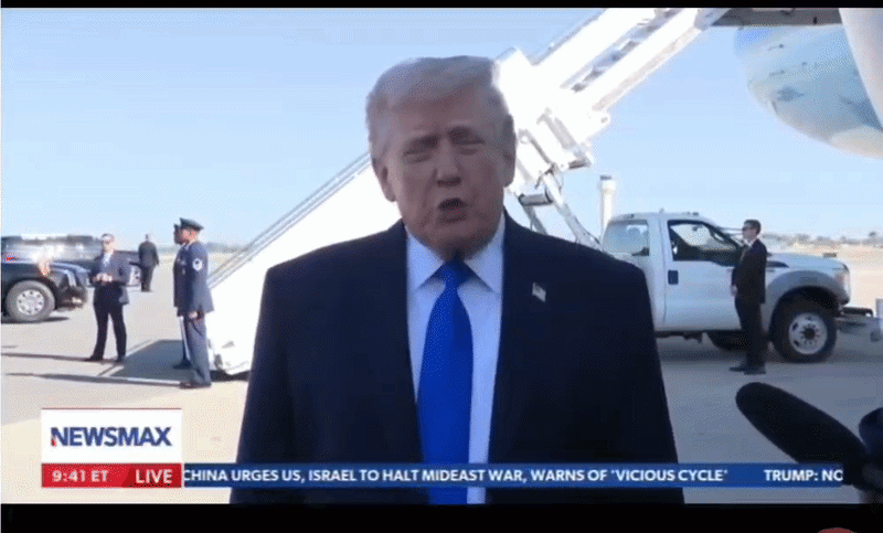 도널드 트럼프 미국 대통령이 23일(현지시간) 협상 성과에 대해 밝히고 있다. [뉴스맥스 방송 영상 GIF]