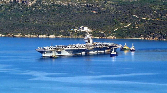 항공모함 USS 제럴드 포드호가 중동 파병 임무를 마치고 23일(월) 그리스의 크레타섬에 도착했다.