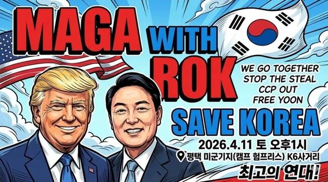 수천 명에 이르는 참가자들은 하얀 우산과 태극기·성조기·피켓을 흔들며 △MAGA with ROK △We go together △Stop the Steal △CCP Out △Free Yoon △Save Korea 등의 구호를 외쳤다. [사진=페이스북]