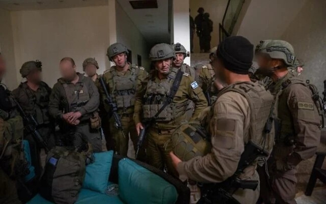 헤즈볼라와 지상전 현장을 방문한 에얄 자미르 이스라엘군 참모총장(가운데) [이스라엘군 제공]