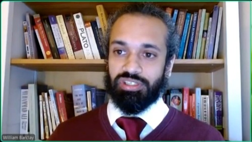 윌리엄 바클레이(왼쪽 위) 씨가 16일(현지시간) 영상 인터뷰를 진행하고 있다. 오른쪽 위는 J씨. [Zoom 영상 GIF]